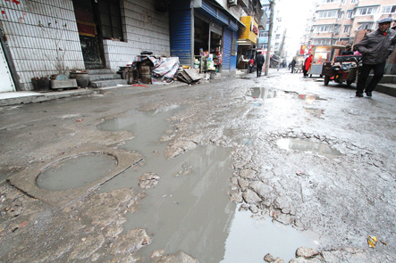 紅旗二路通向涂山路的支路(曾稱(chēng)南崗二路)路面損毀嚴(yán)重,下雨天大大小小的水坑里積滿污水。
